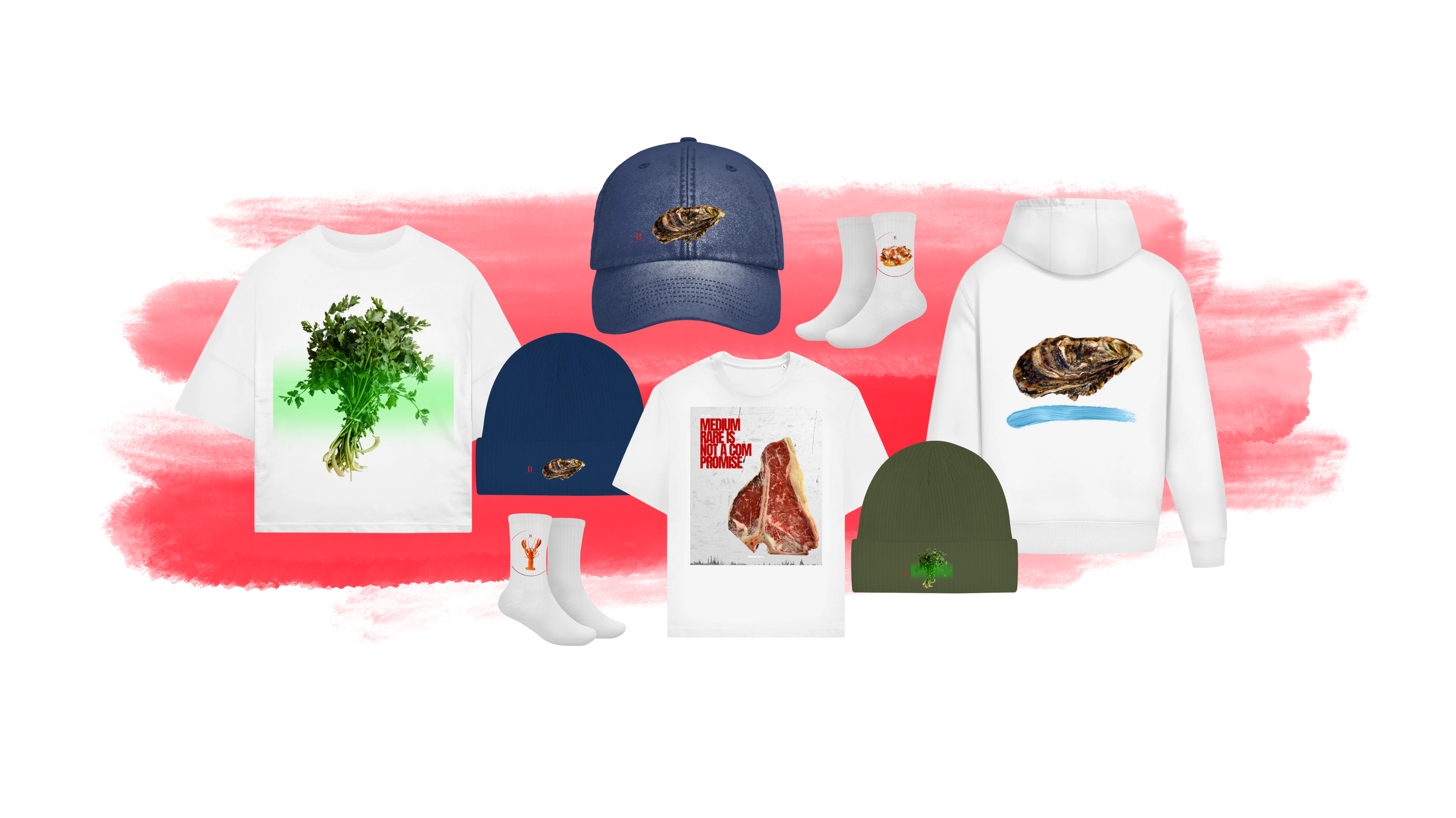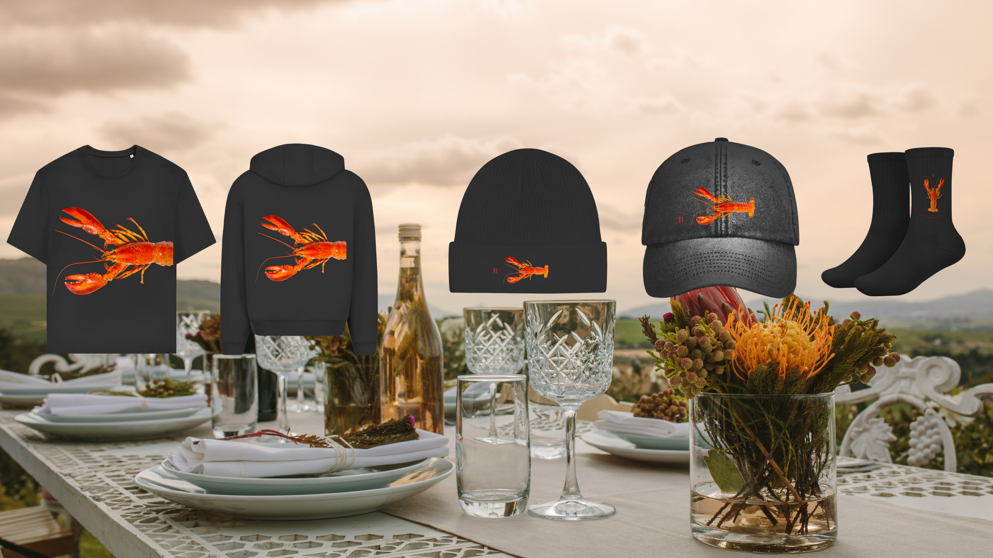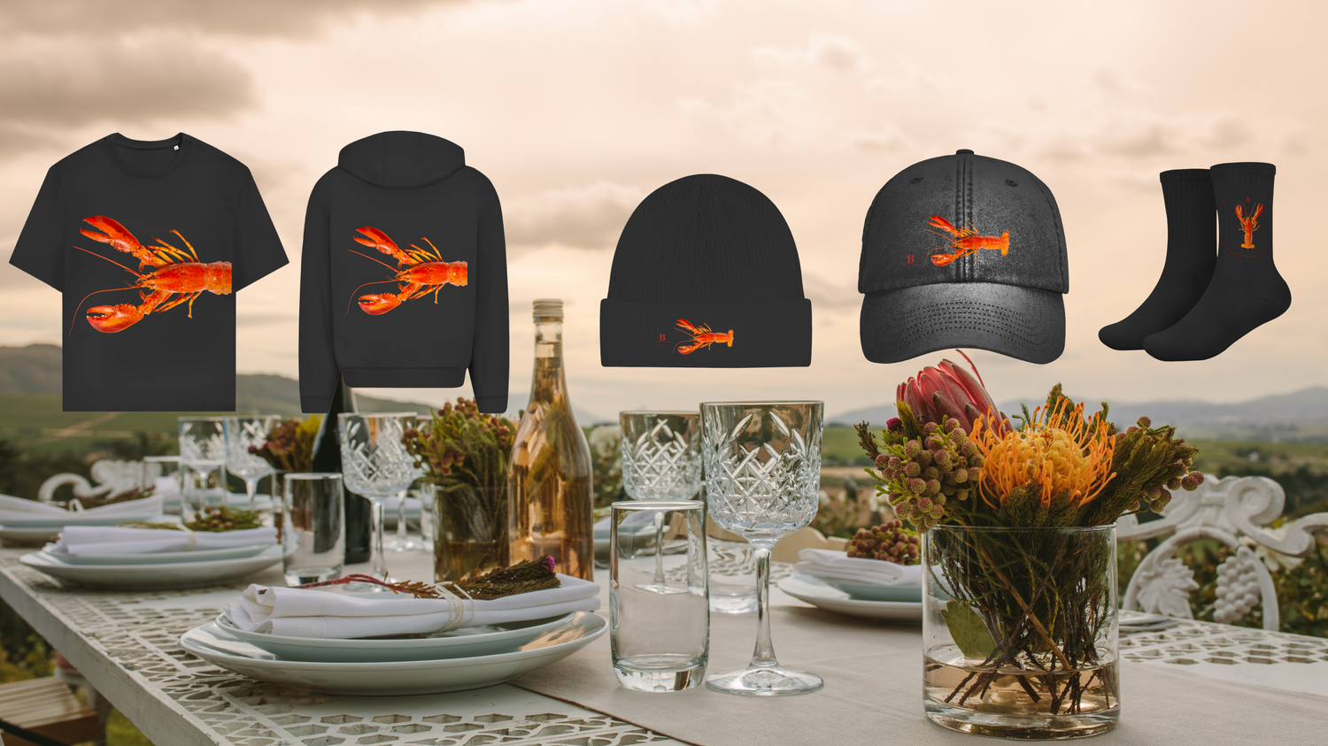 Socken, Hoodie, und Cap mit Lobstermotiv. Grossartig!